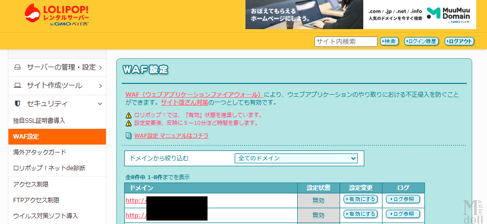 WordPressのウィジェットにアフィリエイトを貼る時に、WAF(ウェブアプリケーションファイアウォール)を無効にしないと弾かれたことを思い出して、さっそく無効にしてきました。