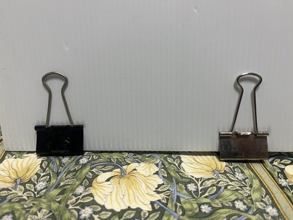 ドール写真を撮るといつも顔が暗くなるので、レフ板もどきを使おう!と白い板を買い、クリップで立たせようとしたりしていましたが、顔が明るくなるなどの効果が全く無く、お蔵入りになりました。