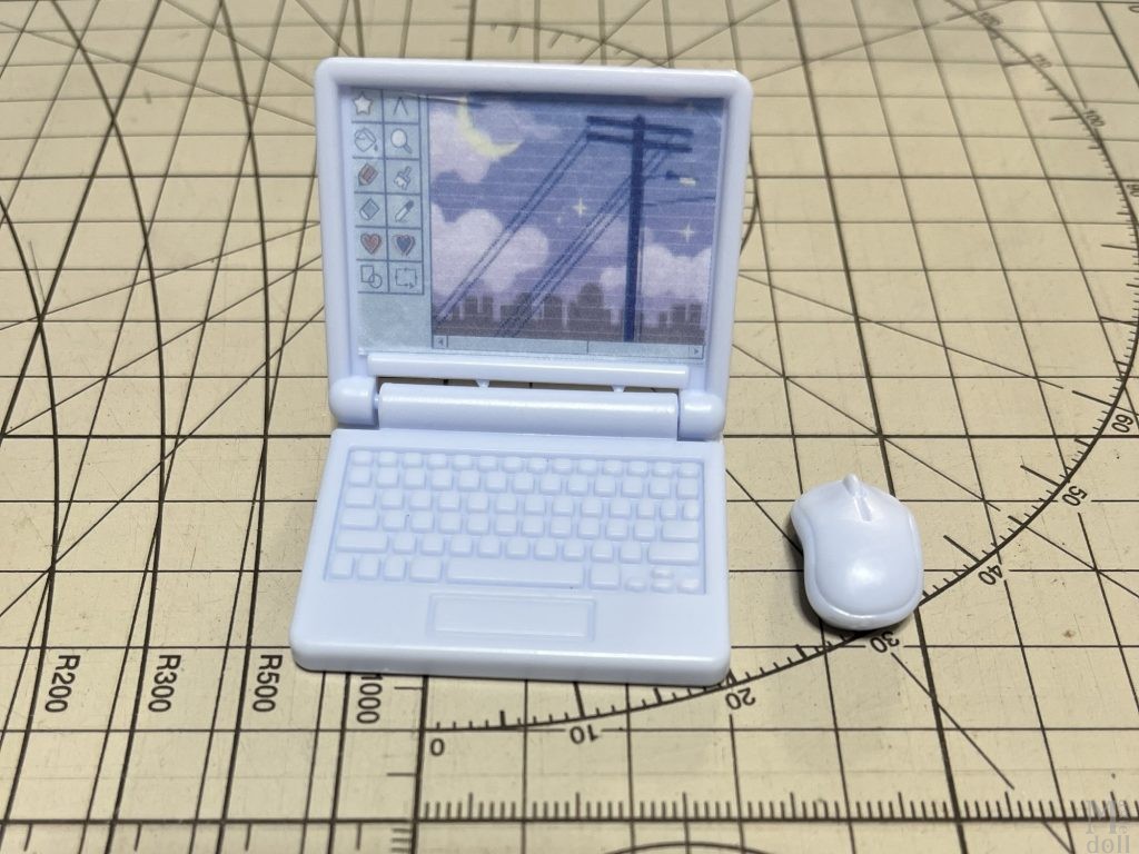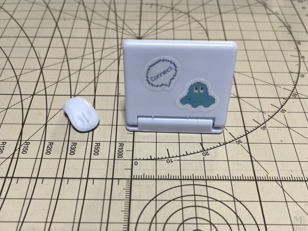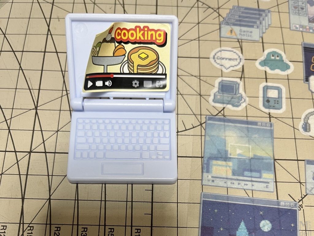 セリアで買ったぬい活用のノートパソコンと、ダイソーで買ったパソコンモニター画面風のシール。このふたつと組み合わせます。