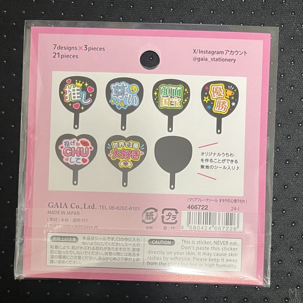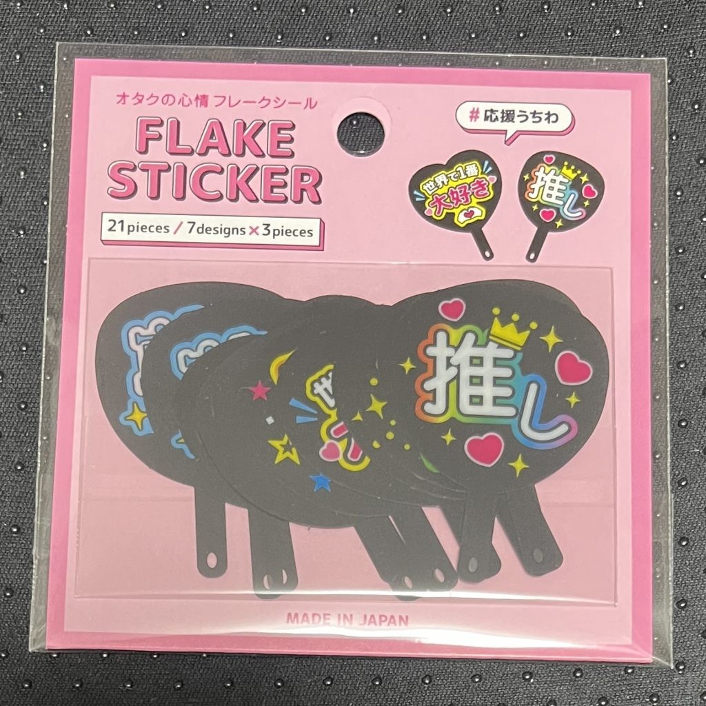 セリアで売っていた推し活うちわシール、FLAKE STICKER。「オタクの心情 フレークシール