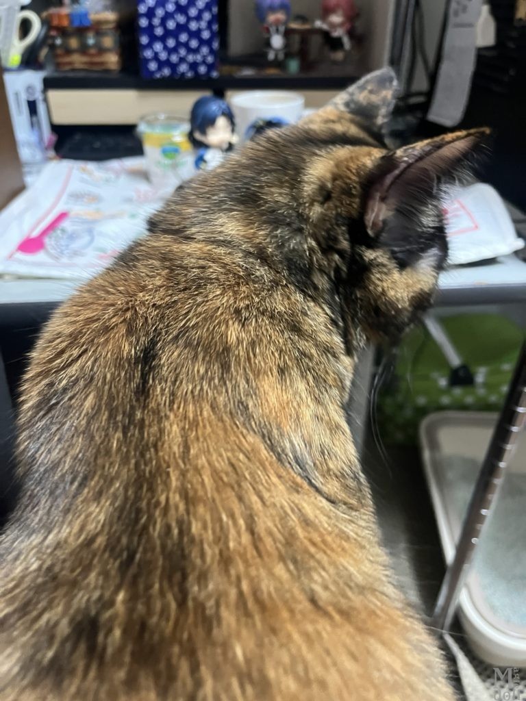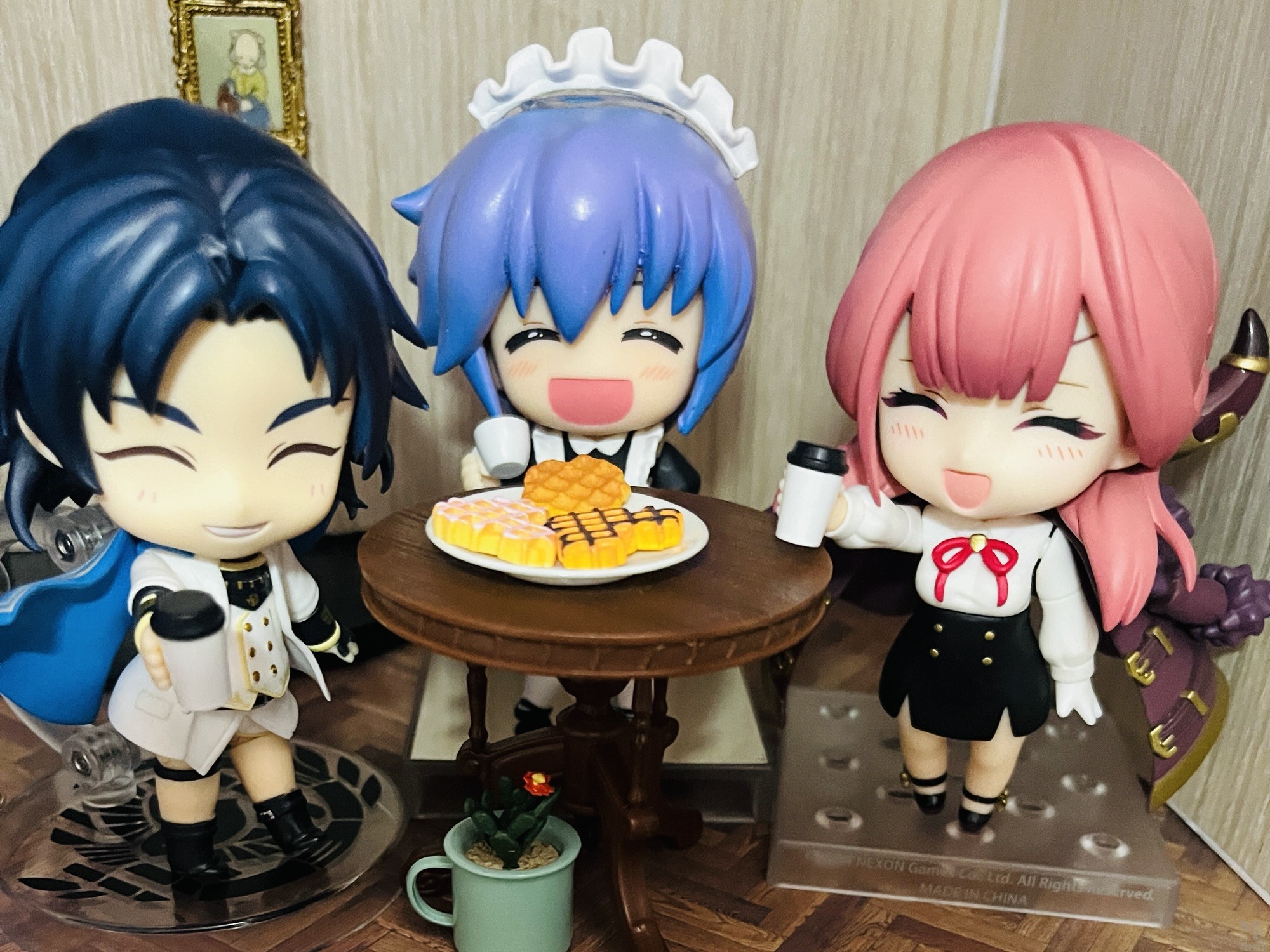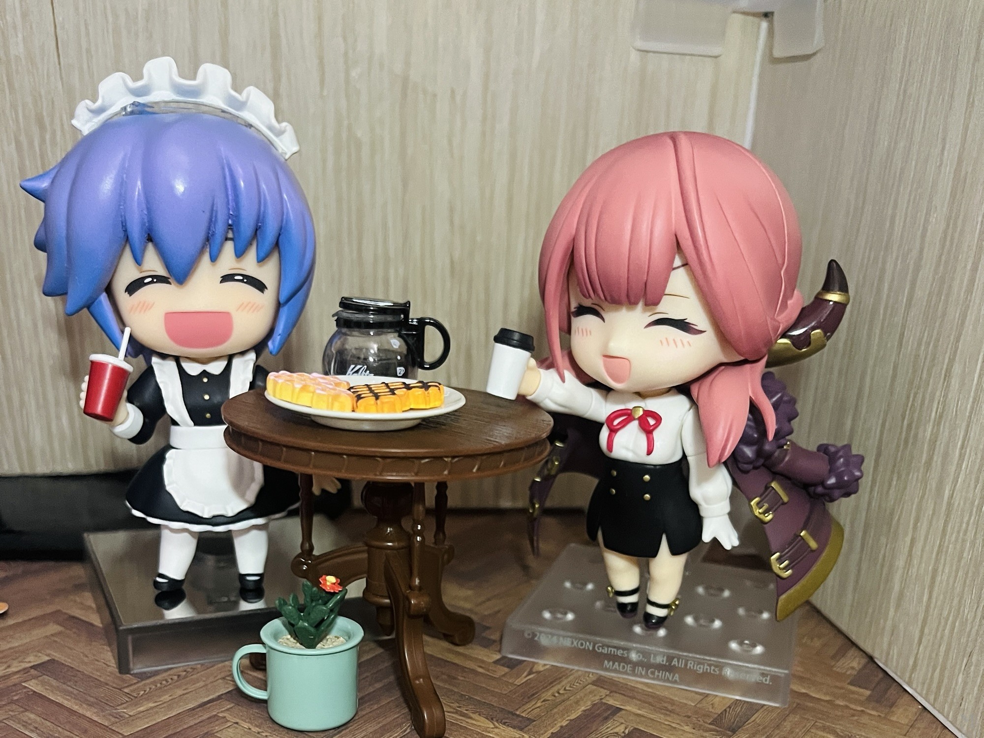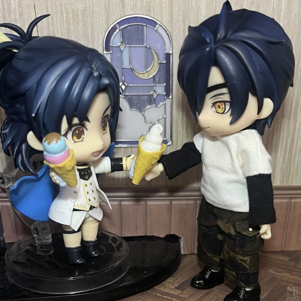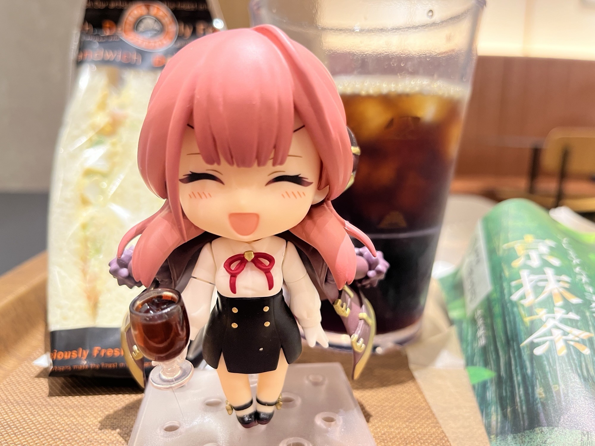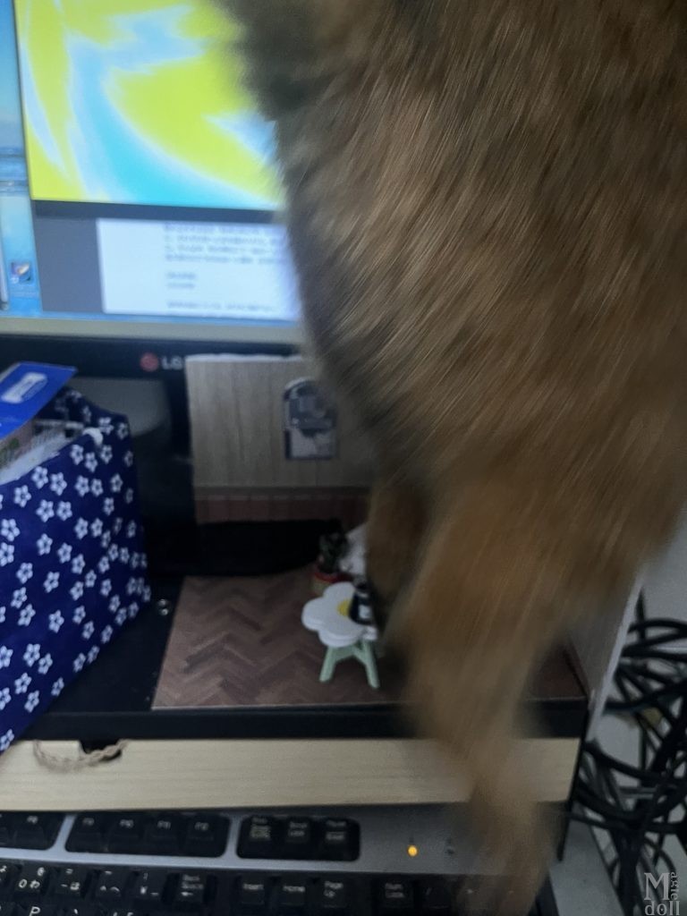 セリアのドールハウスシリーズにお花の形の椅子が売っていたのですが、ねんどろいどどーるのテーブルにちょうどいいなと思ってテーブルにしました。そしていつものごとく撮影の邪魔をするサビ猫(見切れ)。