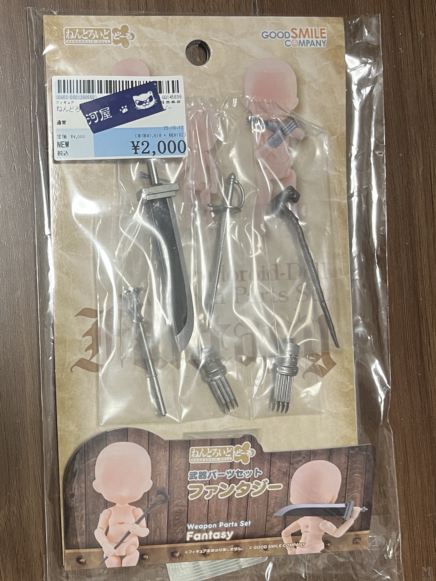 駿河屋に行ったらねんどろいどどーるのファンタジー武器セットが半額で売られてまして。