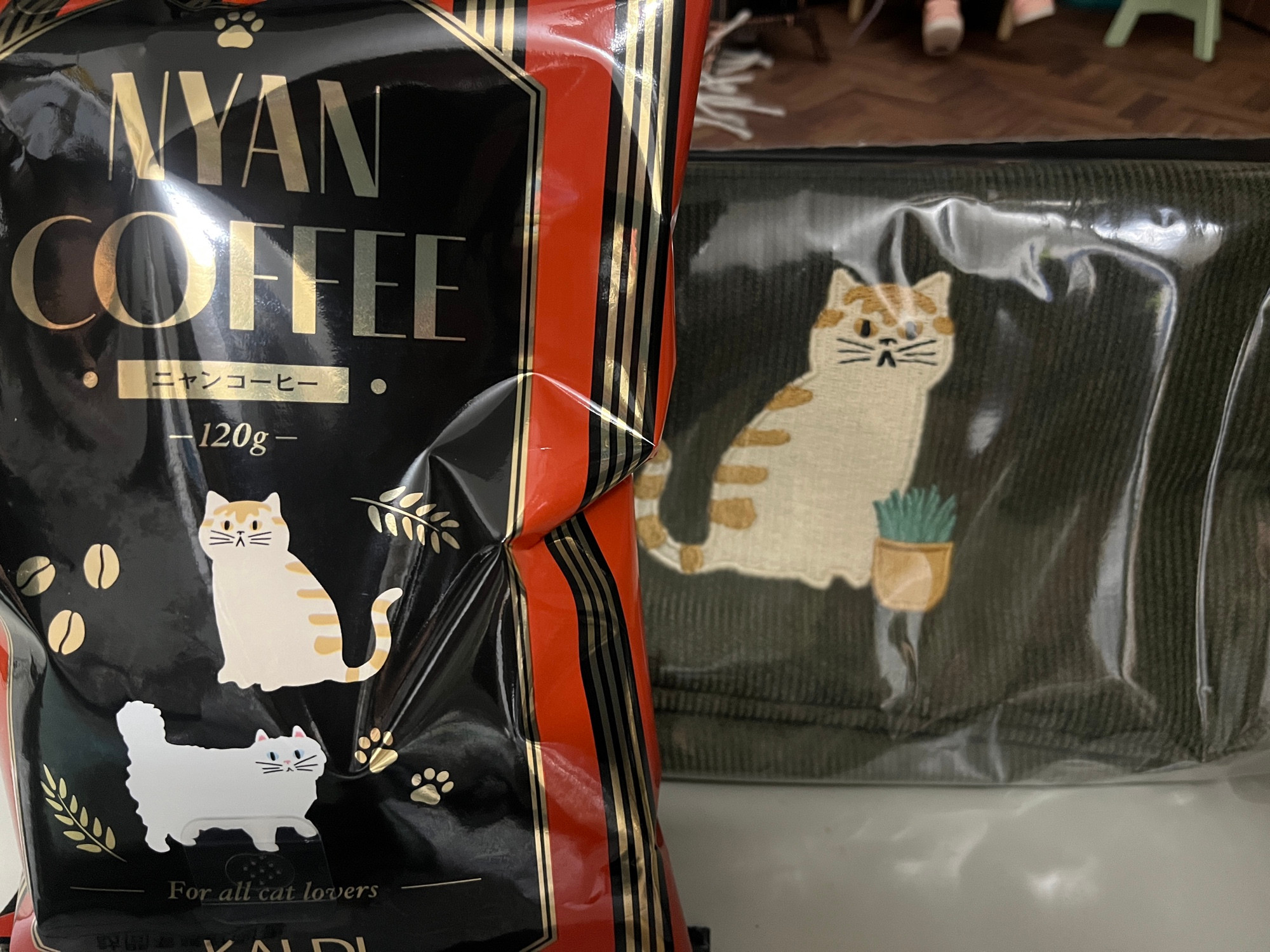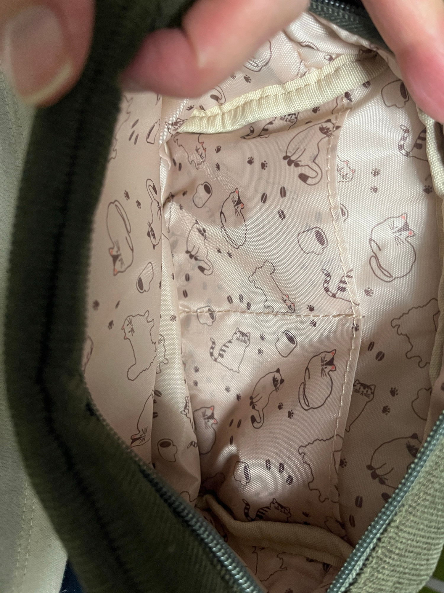 カルディのねこの日のにゃんコーヒーセットが今年も出ていたのですが、ポーチが可愛かったので買ってしまいました。内布の模様も可愛く、ポケットもついているし、虫虫カフェちゃんもいい感じに入りました。