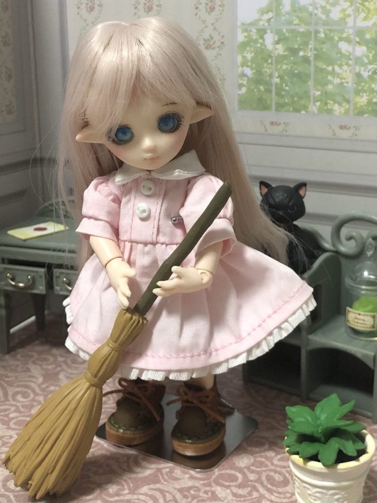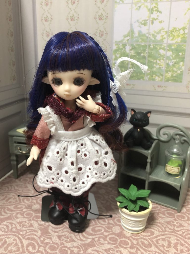 とセーラーワンピを作ったのですが、ミシンのスキルが足りなかったようで「ワンピ……?」という縫い物が完成しました。上からメイドエプロンを被せました。これから段々とお洋服作りが上手くなっていくといいですね~。