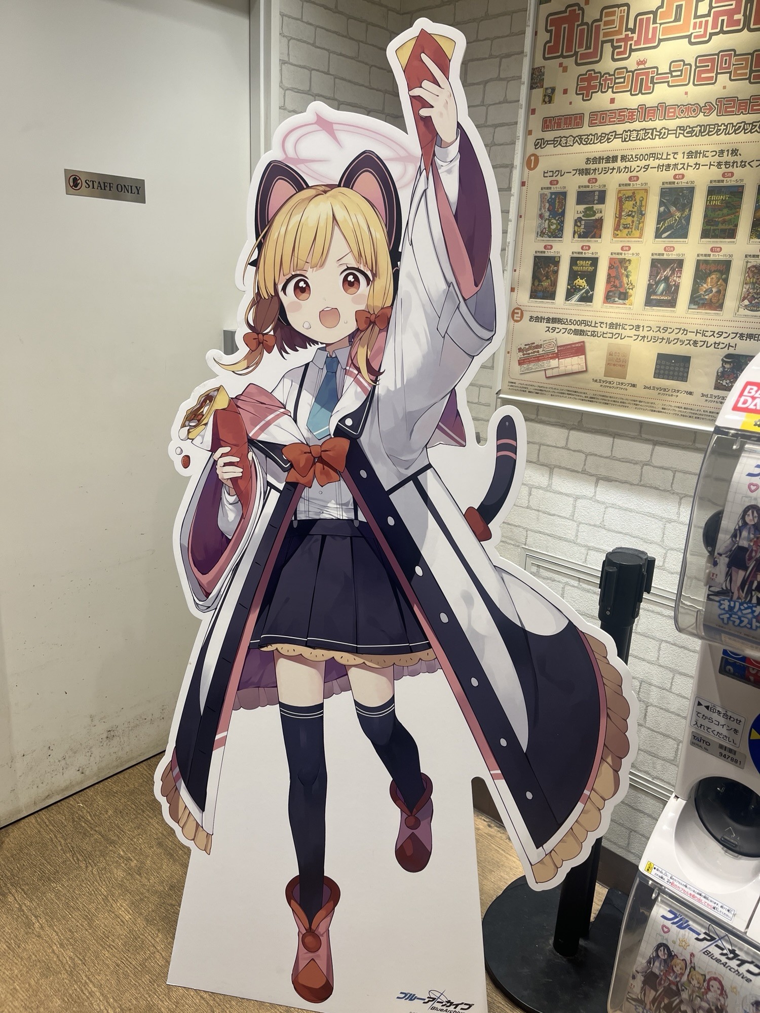 時間の都合で退散したのですが、地下一階にブルアカコーナーがあったようで残念! こちらは帰りに見かけたミドモモ。ブルアカ、旬ですねえ。