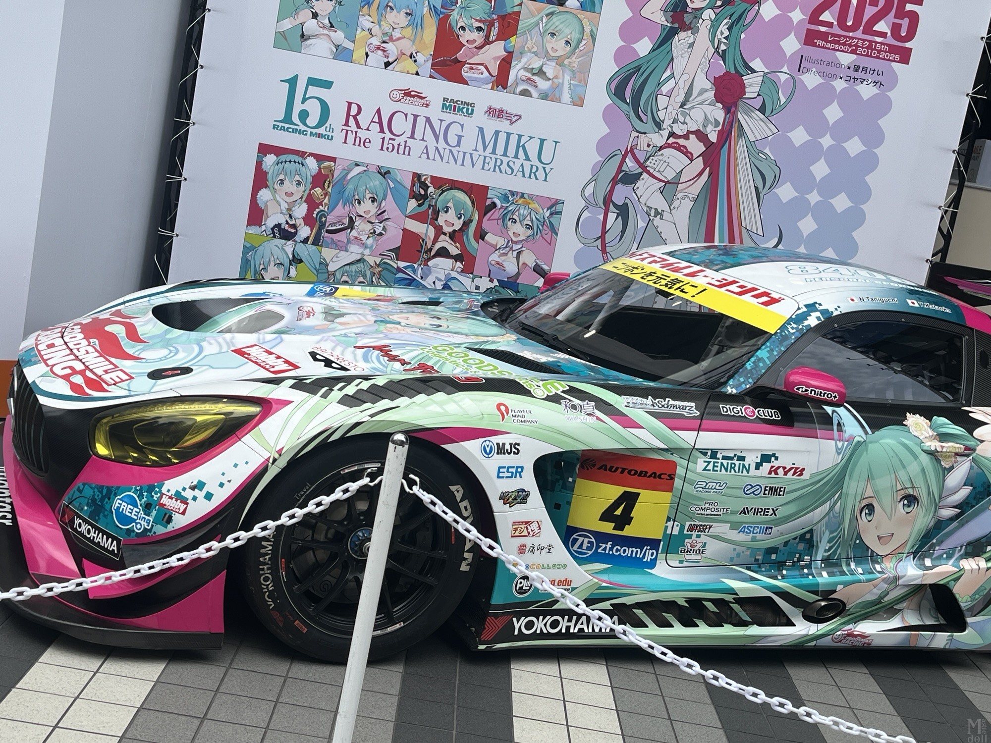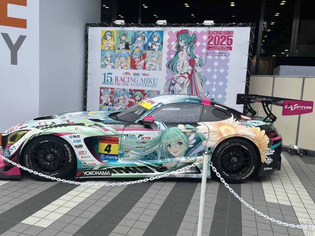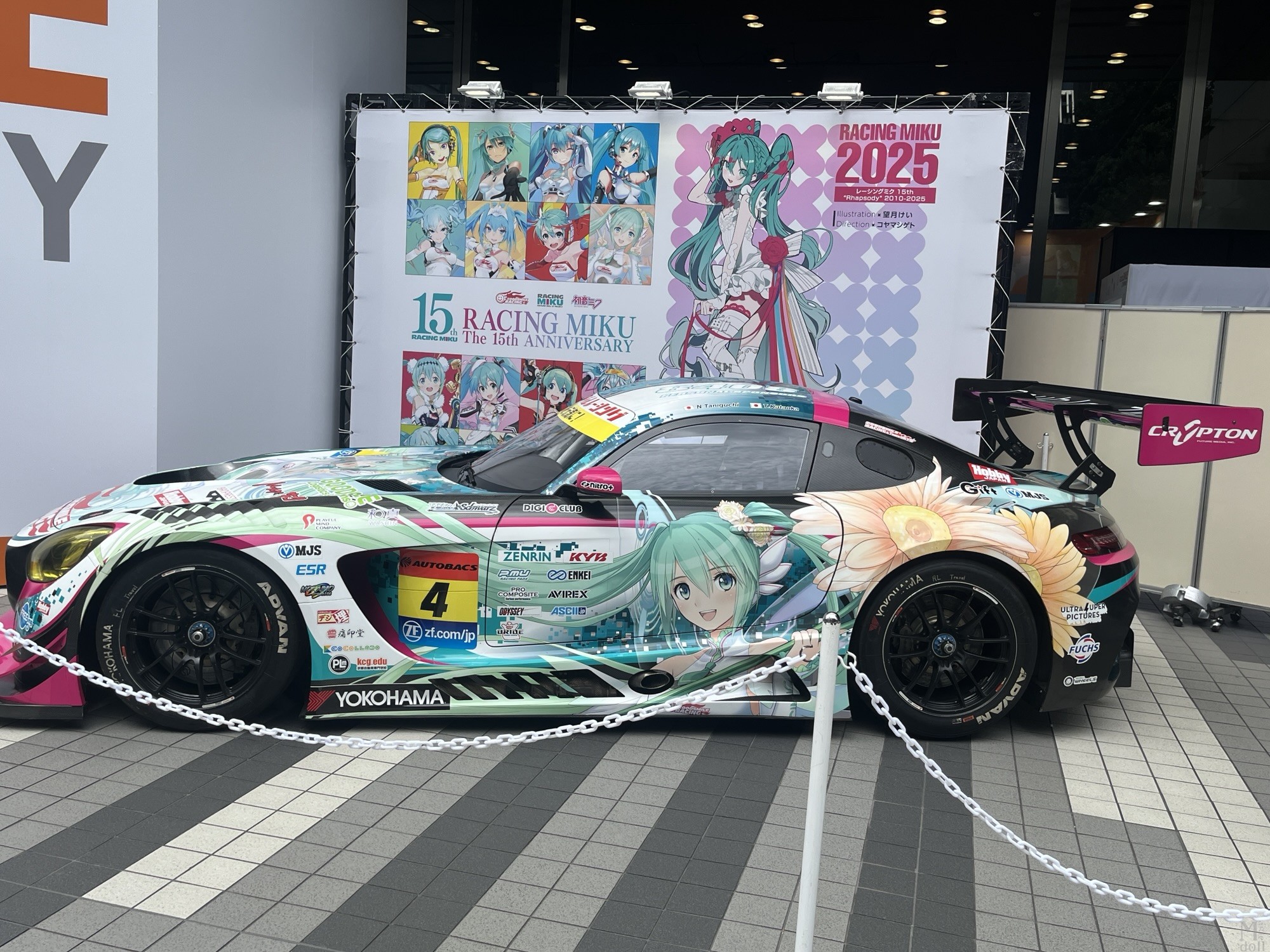 入り口そばの待機列ではレーシングミクカーがお出迎え。
