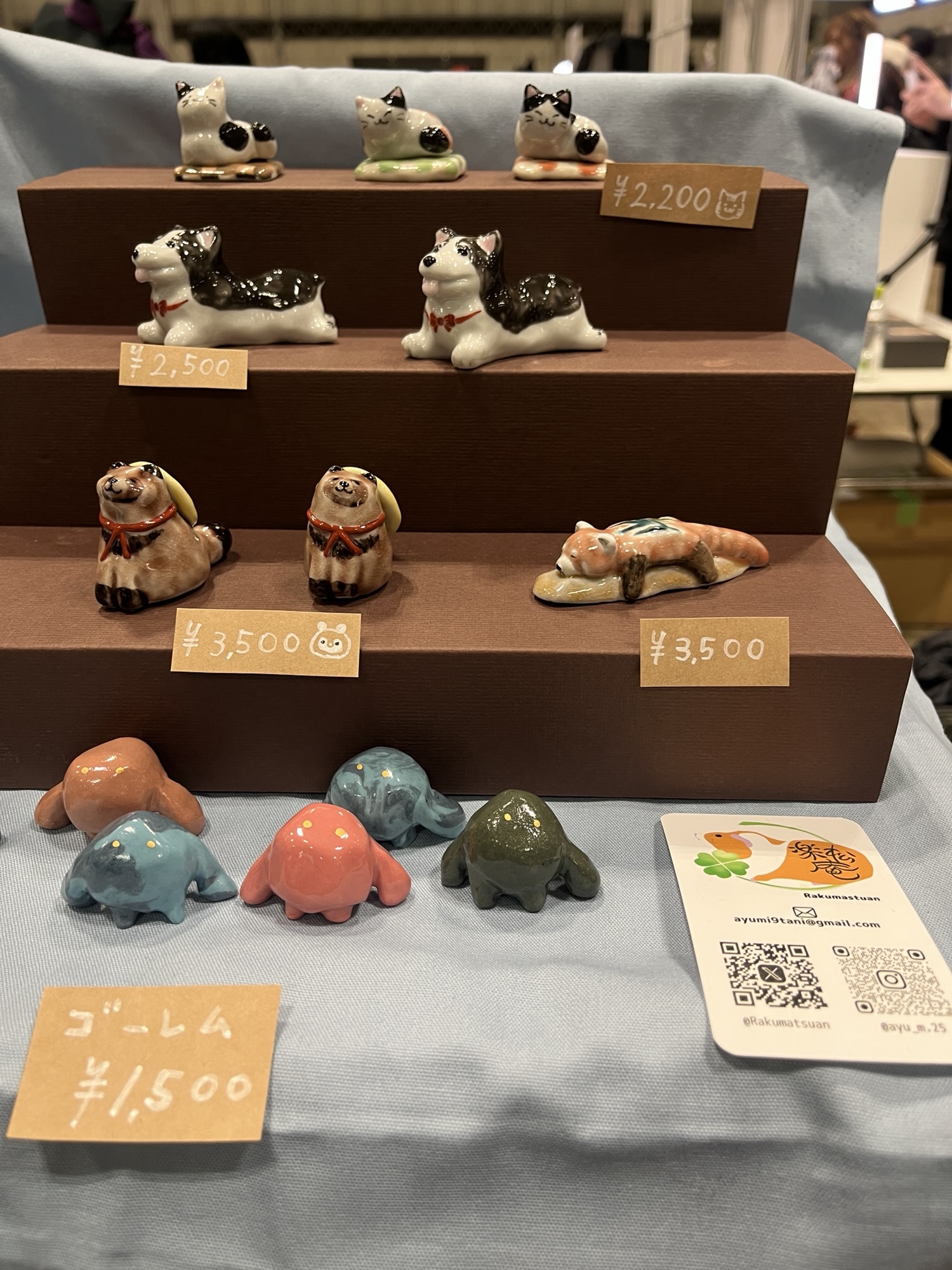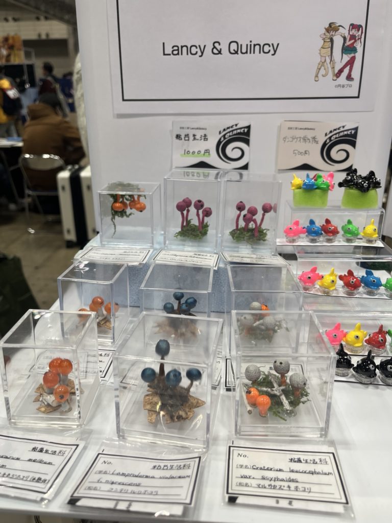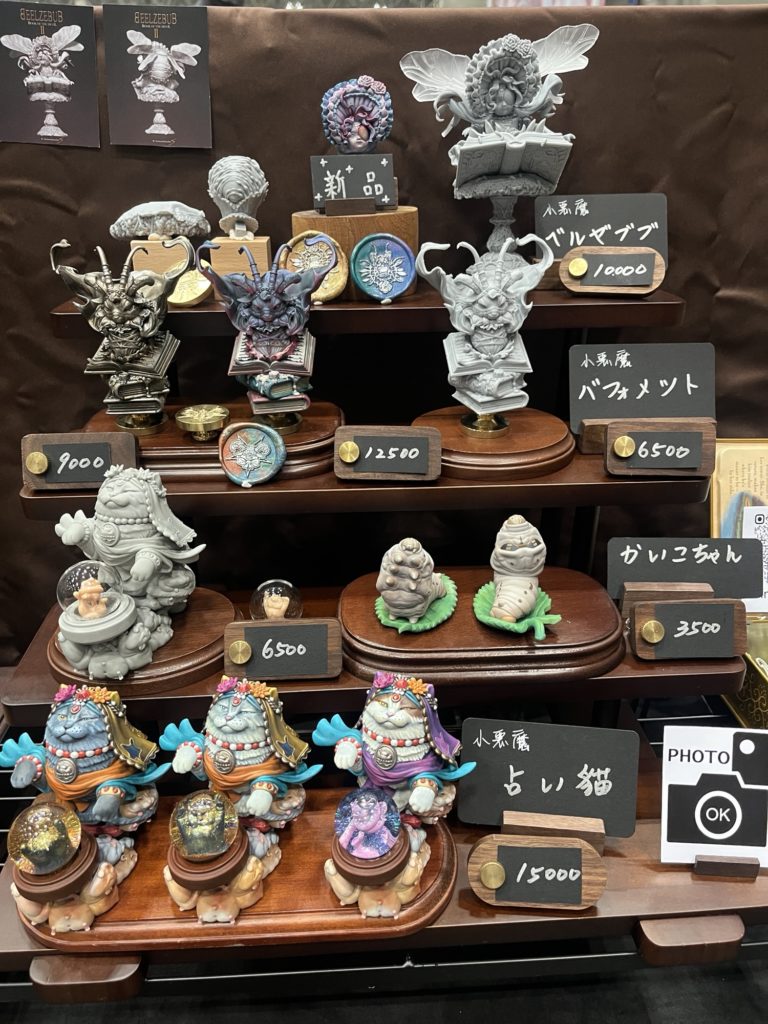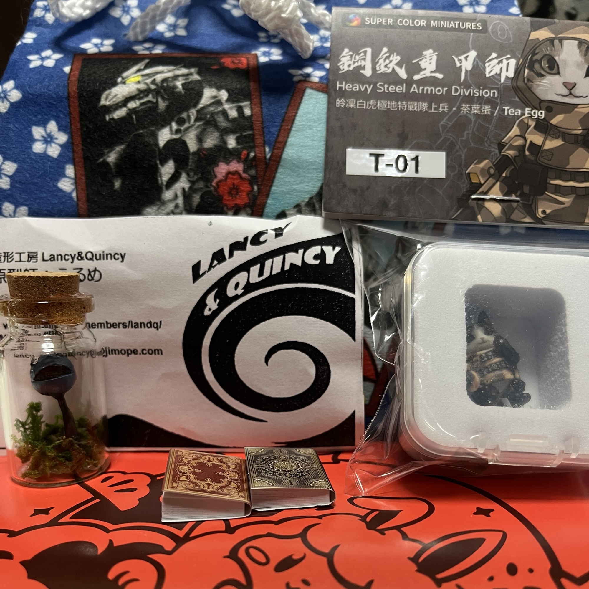 メカゴジラの信玄餅、ミニチュアの本、粘菌フィギュア、ミニチュアの猫兵士。