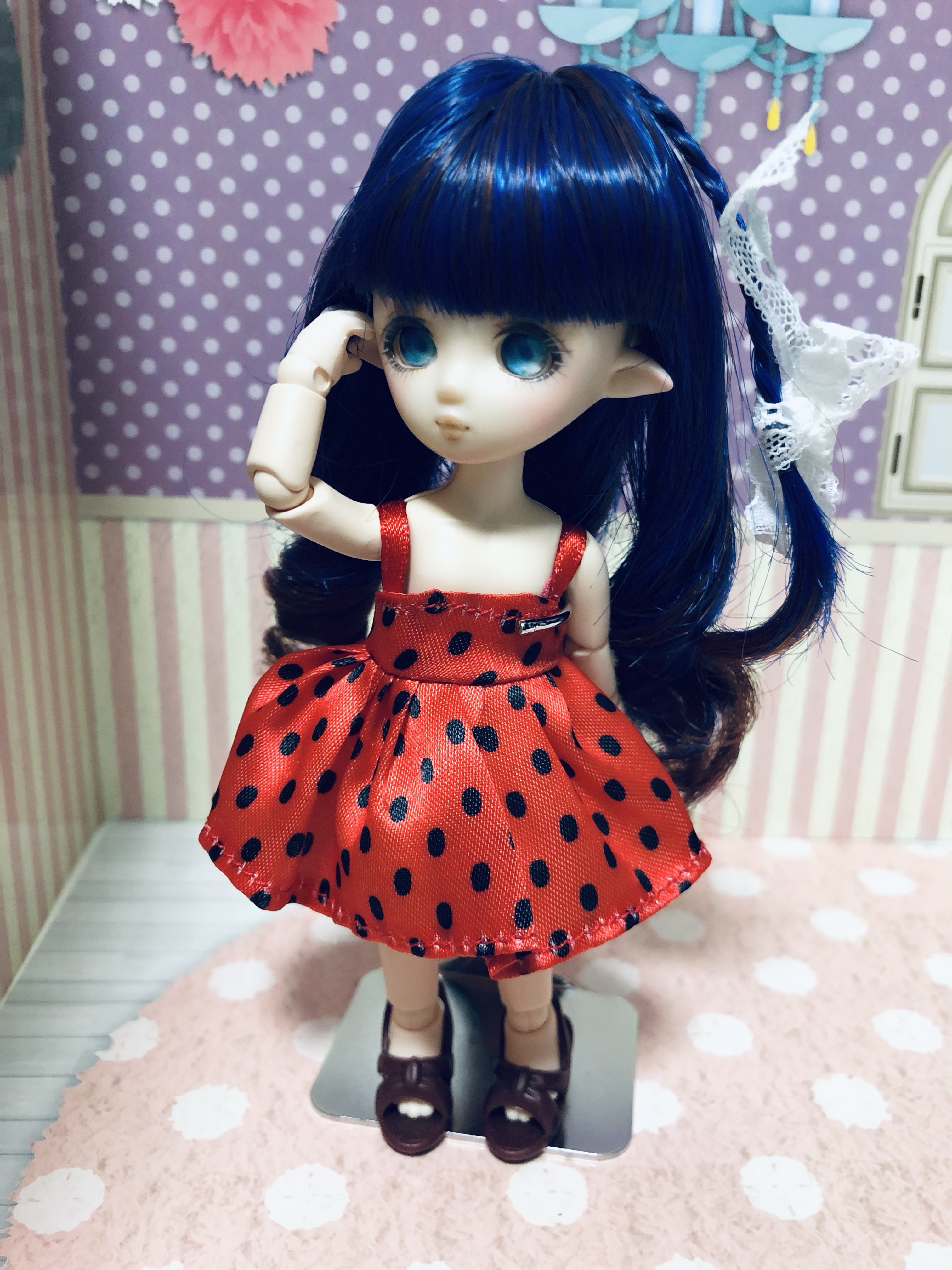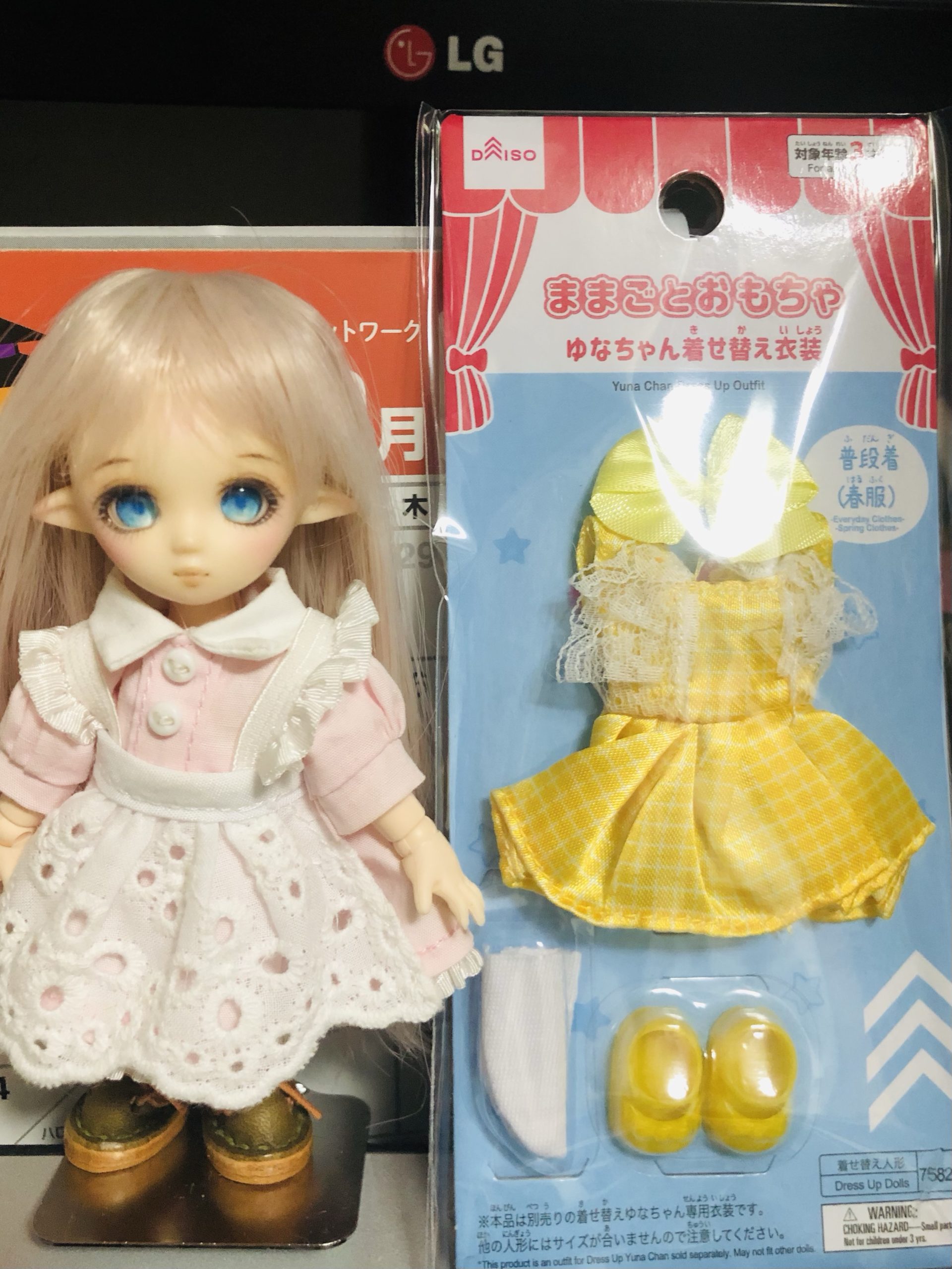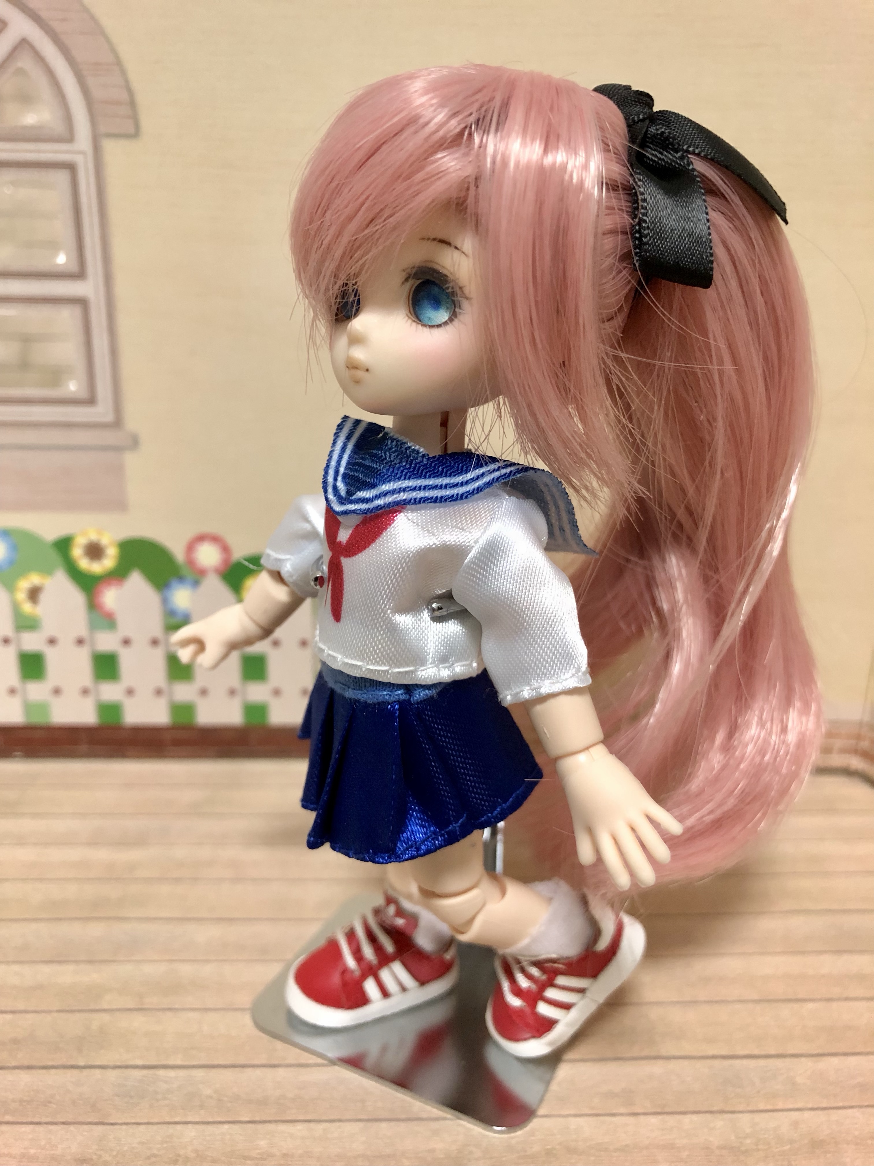 ダイソーのゆなちゃん服をオビツ11に着せる 1/12ドール 2022.11.152025.05.01 ダイソーにミニサイズのドール&お洋服が売られていたのでゲットして来ました。 靴がちょっときつかったので後ろ側に切れ込みを入れて履いています。かわいいかも! こちらは派手な赤+黒水玉のワンピースですが、これは多分……いちご……!セットでついていた靴はバリ取りが面倒そうだったので他の靴にしました。 セーラー服もありました。これで100円! 定番のドレス。やっぱりドレスがドールには似合うなと思うのです。 リンク 👏Web拍手👏|ポチッとお願いします!